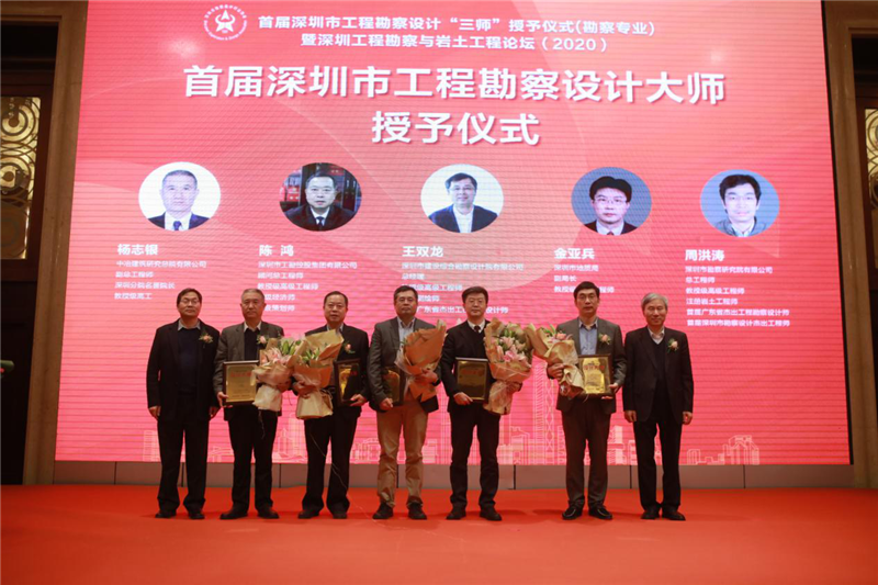 工勘集團(tuán)總工程師陳鴻(左三)獲評為“首屆深圳市工程勘察設(shè)計大師”