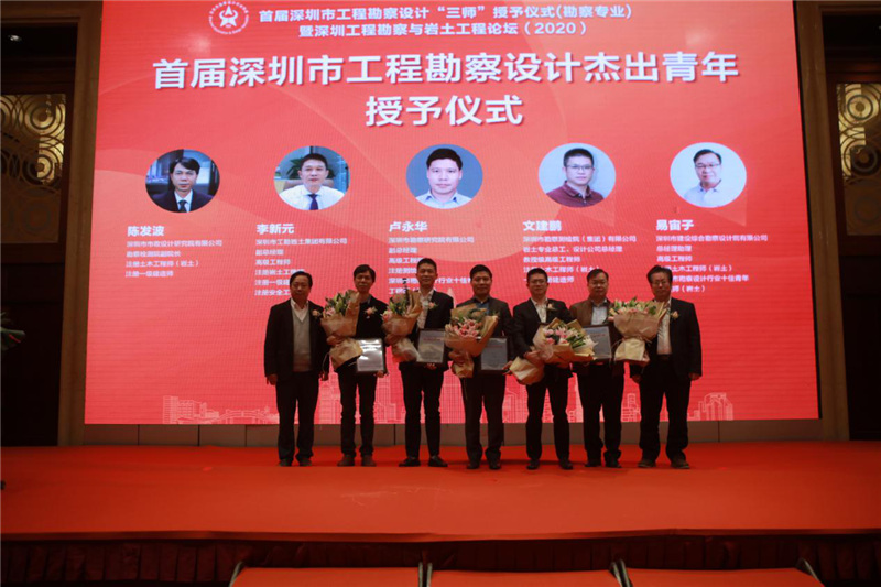 工勘巖土集團(tuán)副總經(jīng)理李新元(左三)獲評為“首屆深圳市工程勘察設(shè)計杰出青年”